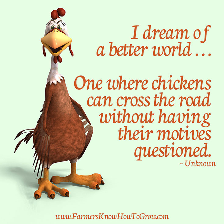 “I dream of a better world . . . One where chickens can cross the road without having their motives questioned.” ~ Unknown