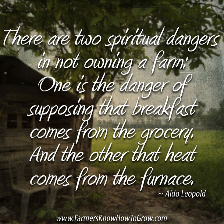 “There are two spiritual dangers in not owning a farm: One is the danger of supposing that breakfast comes from the grocery. And the other, that heat comes from the furnace.” ~ Aldo Leopold