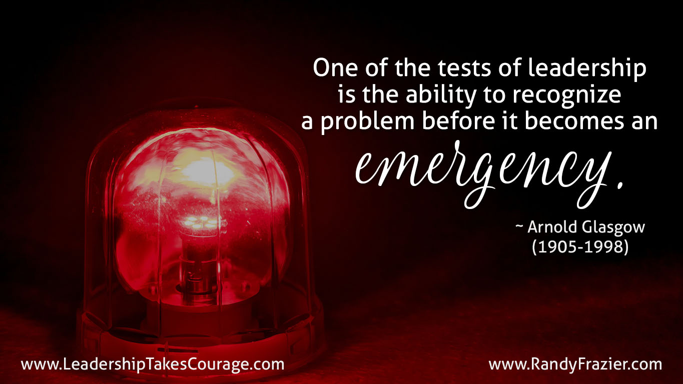 “One of the tests of leadership is the ability to recognize a problem before it becomes an emergency.” ~ Arnold Glasgow