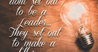 How can you make a difference today? “Great leaders don’t set out to be a leader . . . they set out to make a difference.” ~ Unknown