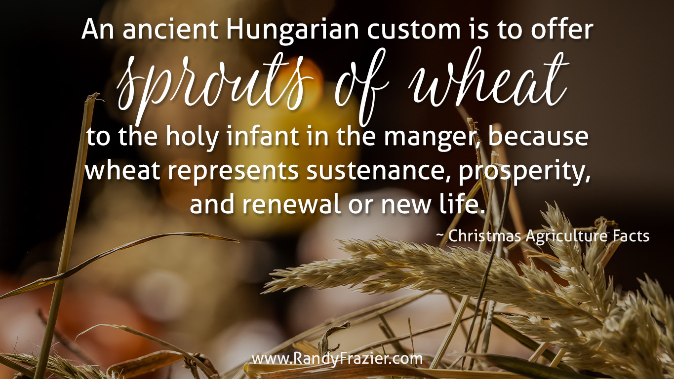 “An ancient Hungarian custom is to offer sprouts of wheat to the holy infant in the manger, because wheat represents sustenance, prosperity, and renewal or new life.” ~ Christmas Agriculture Facts