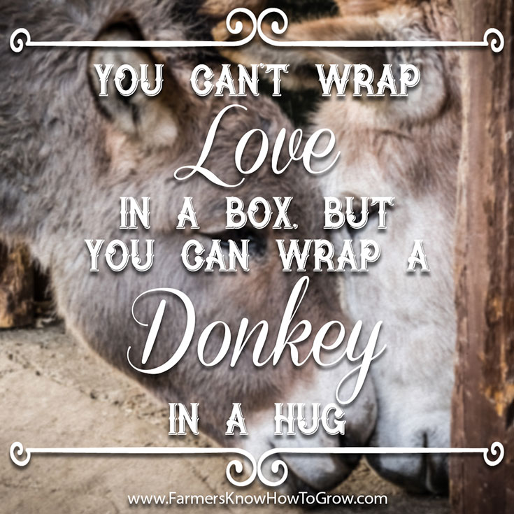 You can’t wrap love in a box, but you can wrap a donkey in a hug.