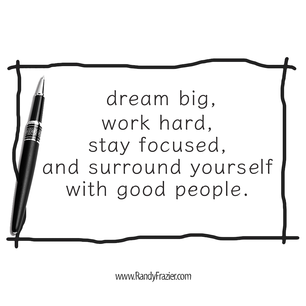 “Dream big, work hard, stay focused, and surround yourself with good people.” ~ Unknown