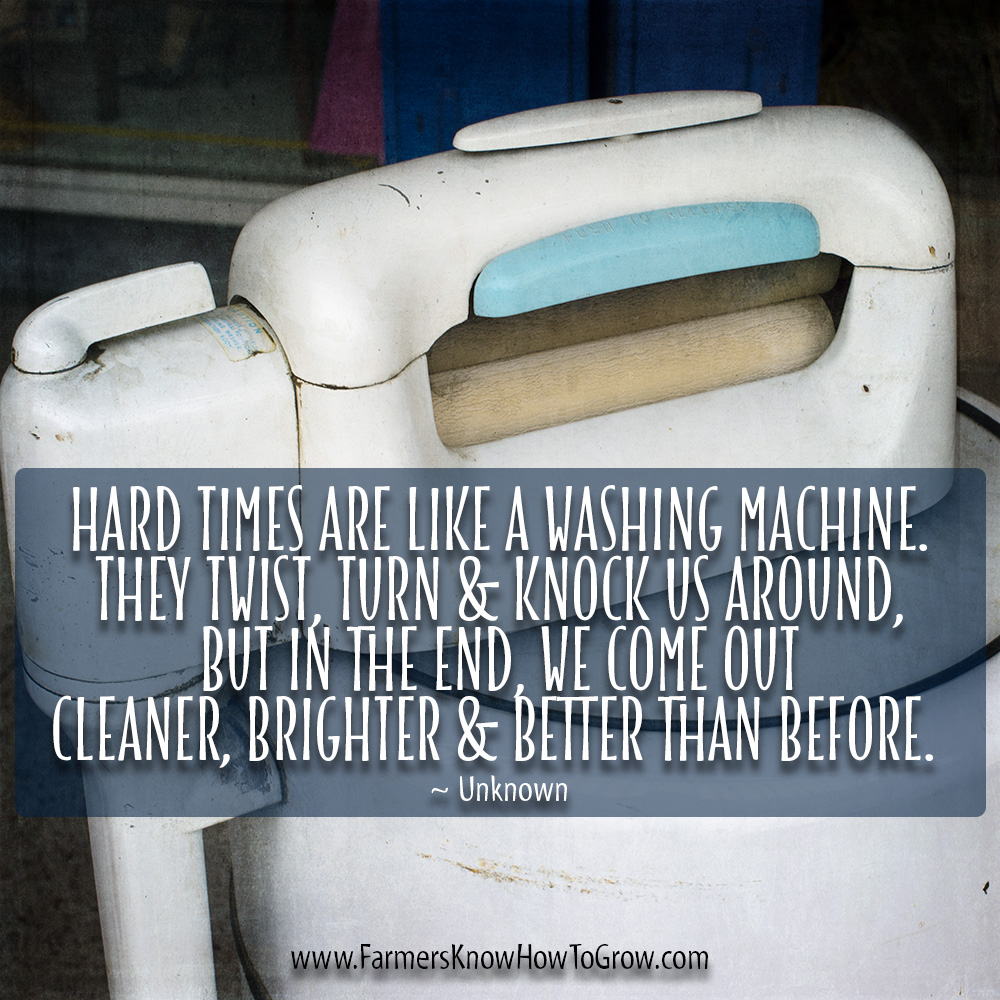 “Hard times are like a washing machine. They twist, turn & knock us around, but in the end, we come out cleaner, brighter, and better than before.” ~ Unknown