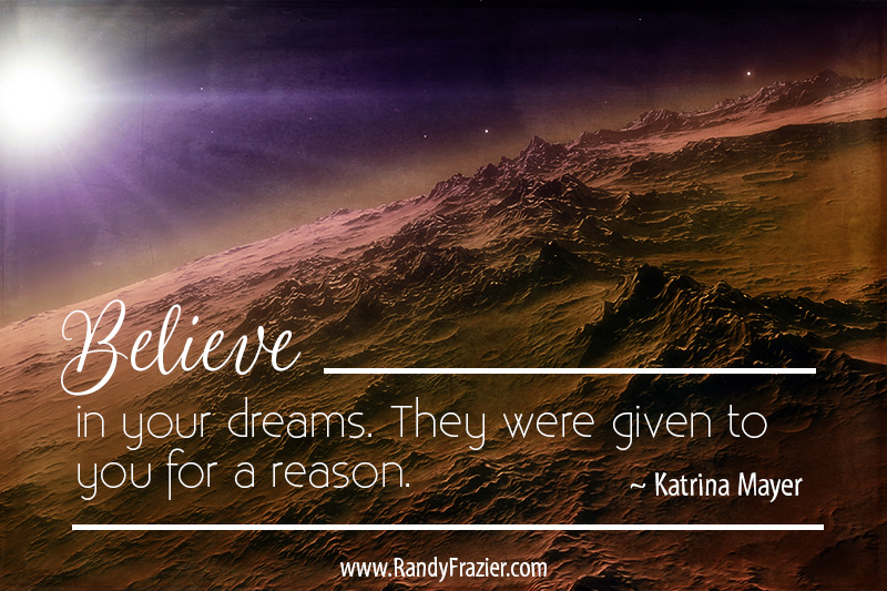 “Believe in your dreams. They were given to you for a reason.” ~ Katrina Mayer