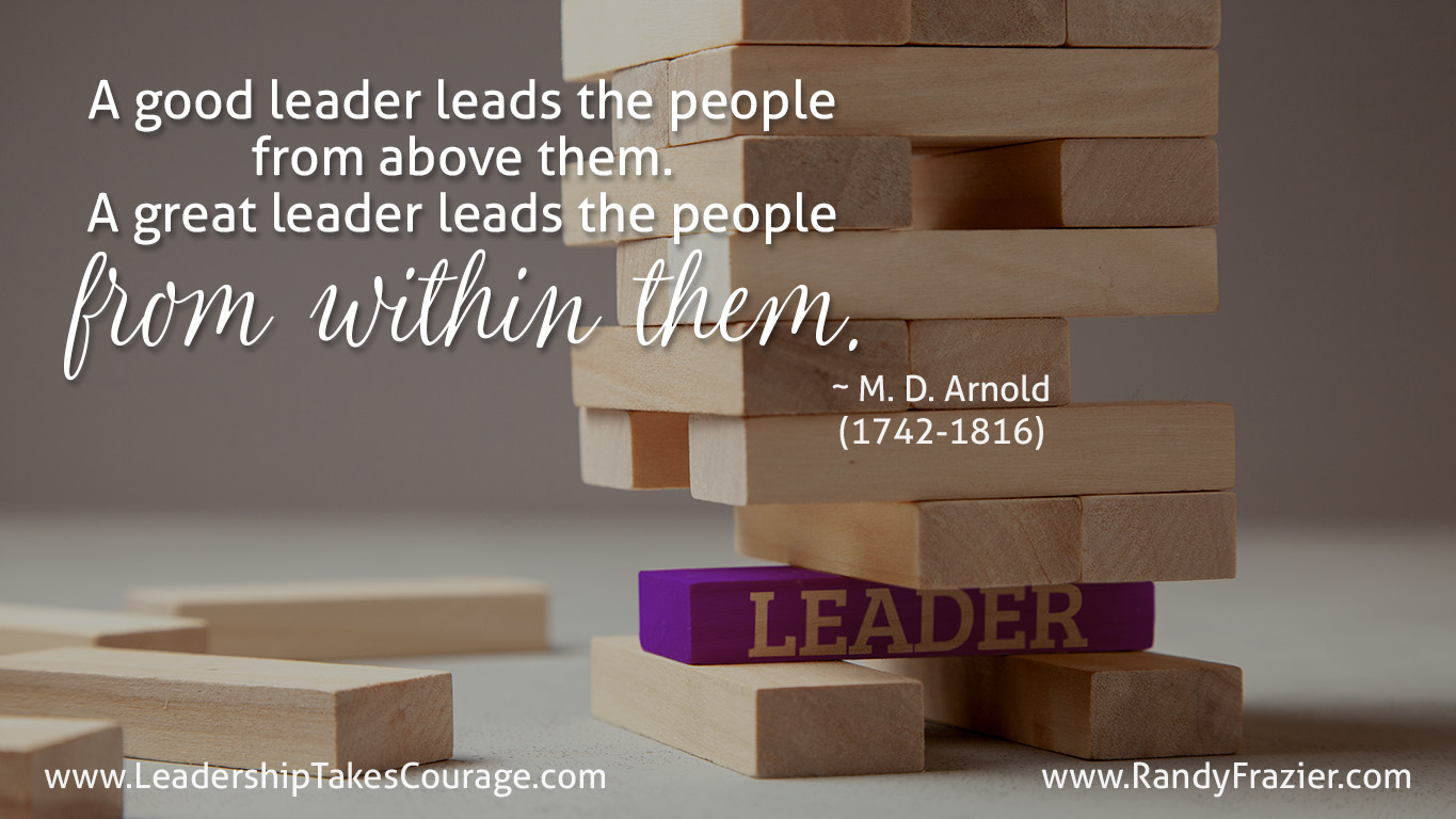 “A good leader leads the people from above them. A great leader leads the people from within them.”