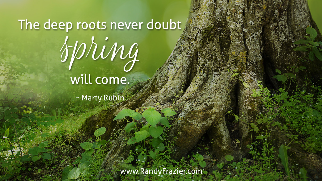 “The deep roots never doubt spring will come.” ~ Marty Rubin