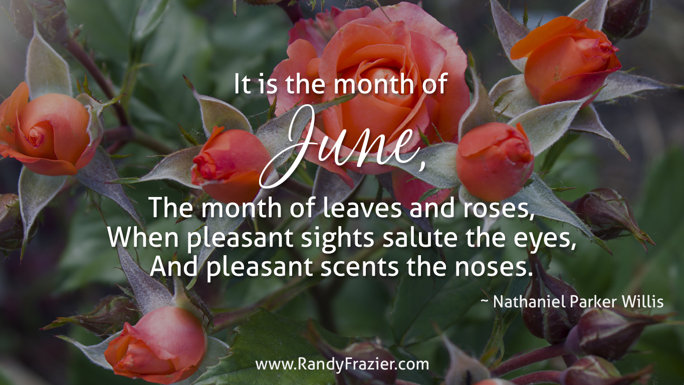 “It is the month of June, the month of leaves and roses, when pleasant sights salute the eyes, and pleasant scents the noses.”~ Nathaniel Parker Willis