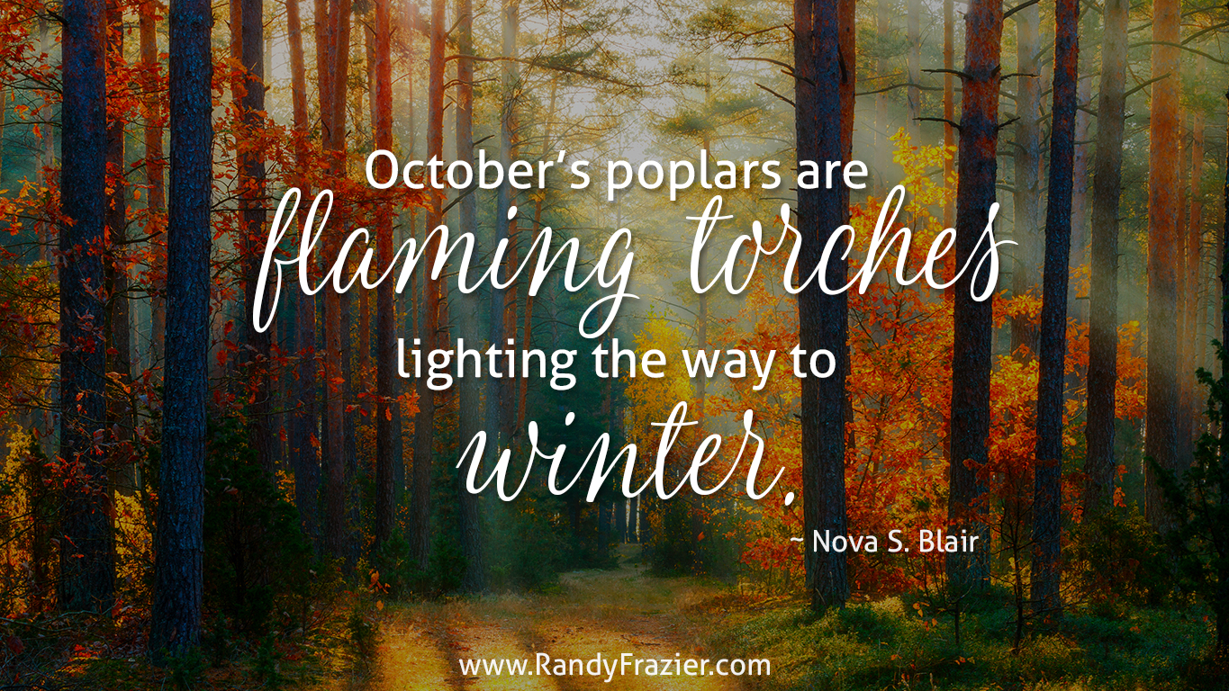 “October’s poplars are flaming torches lighting the way to winter.” ~ Nova S. Blair