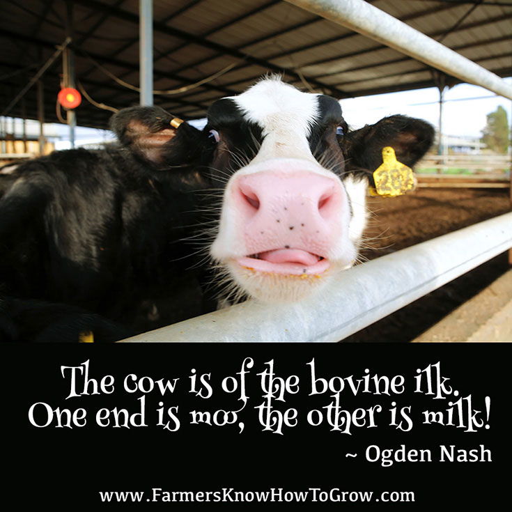 “The cow is of the bovine ilk. One end is moo, the other is milk!” ~ Ogden Nash