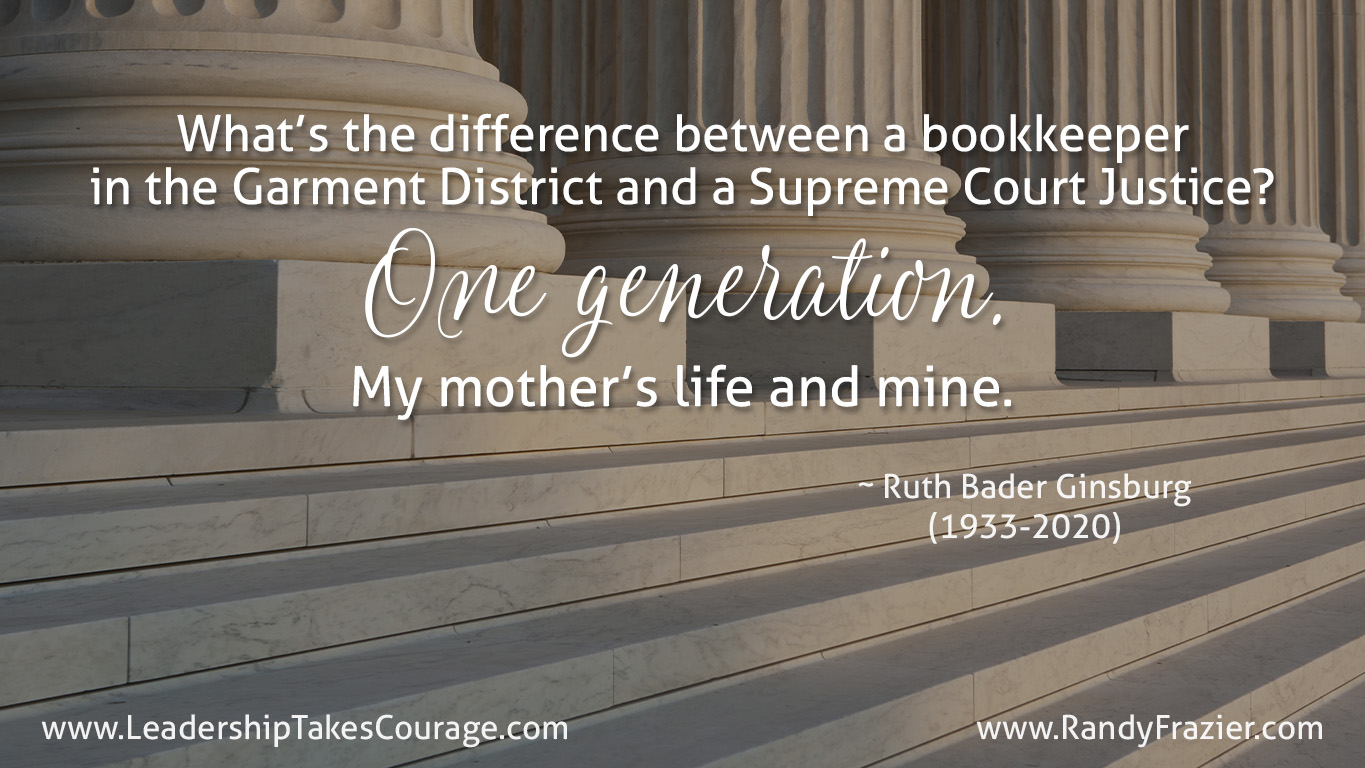 “What’s the difference between a bookkeeper in the Garment District and a Supreme Court Justice? One generation. My mother’s life and mine.” ~ Ruth Bader Ginsburg