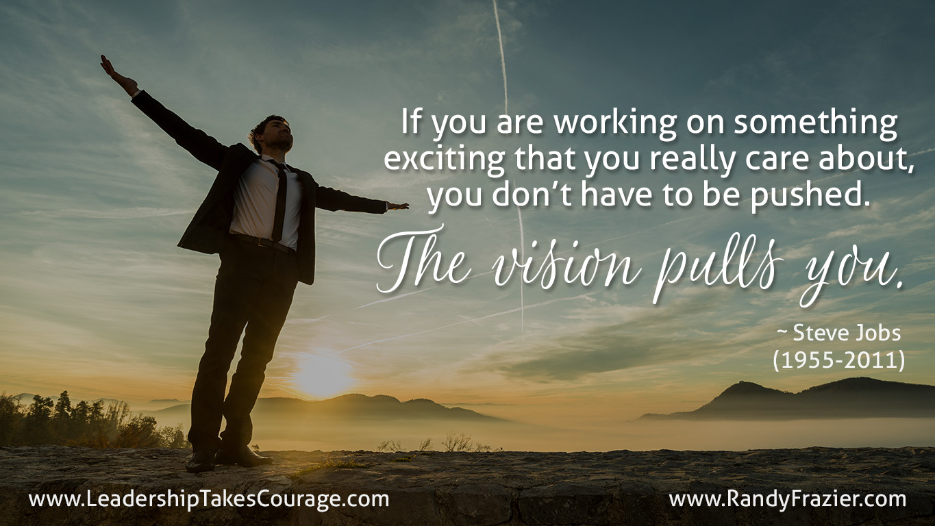 “If you are working on something exciting that you really care about, you don’ have to be pushed. The vision pulls you.” ~ Steve Jobs