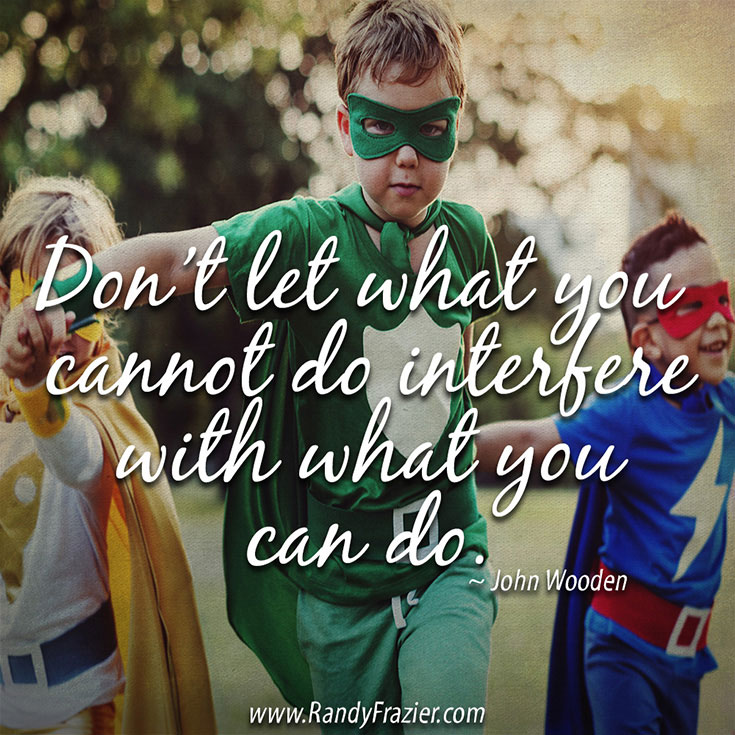 Spend your energy focusing on your CANS, not your CAN’TS. “Don’t let what you cannot do interfere with what you can do.” ~ John Wooden