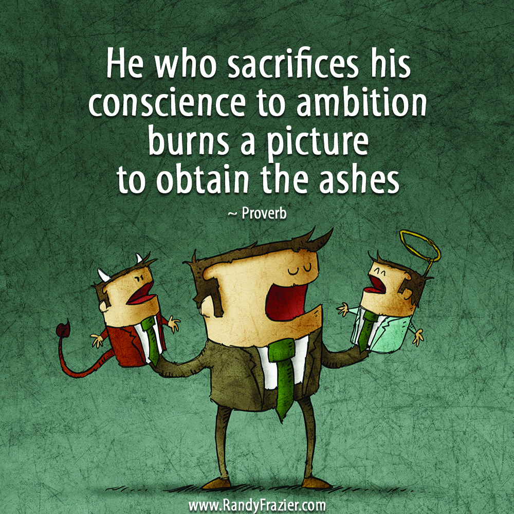 “He who sacrifices his conscience to ambition burns a picture to obtain the ashes.” ~ Proverb
