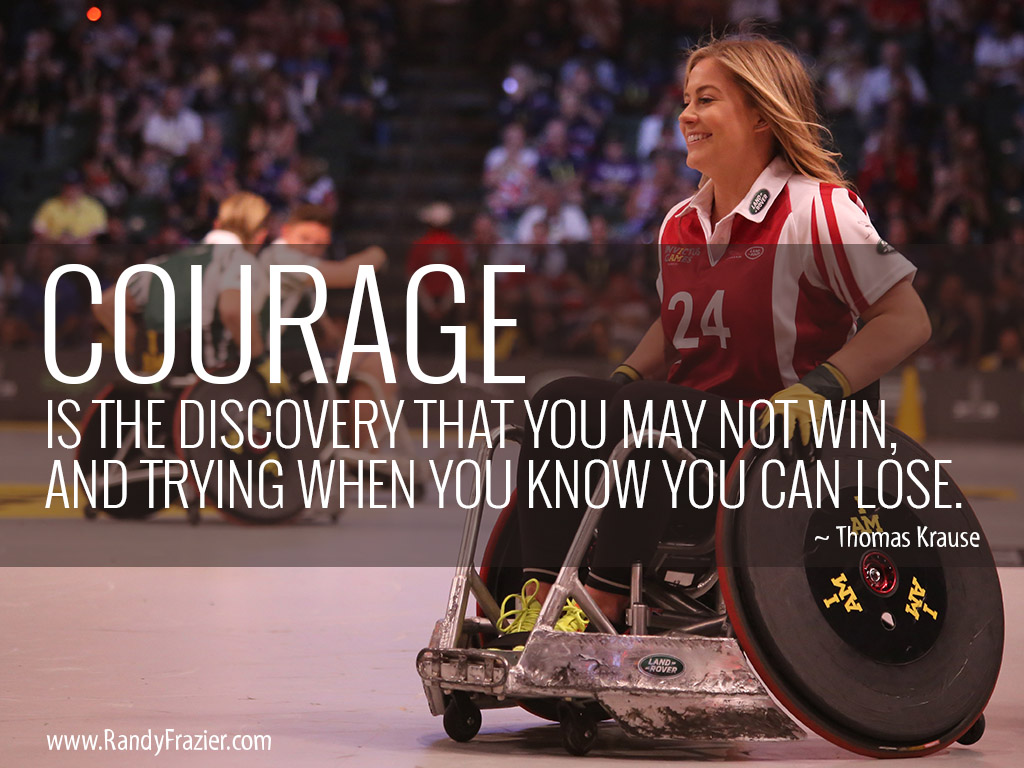 “Courage is the discovery that you may not win, and trying when you know you can lose.” ~ Thomas Krause
