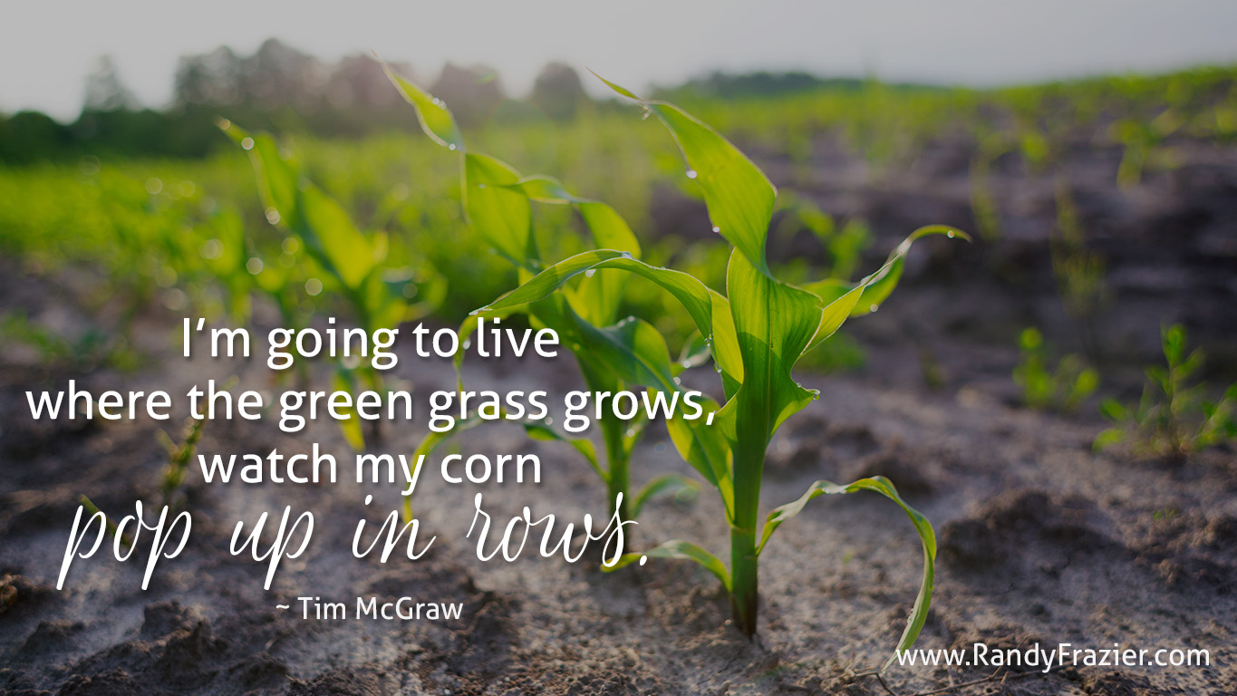“I’m going to live where the green grass grows, watch my corn pop up in rows.” ~ Tim McGraw